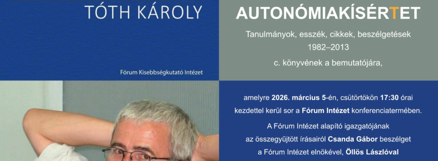 2026. március 5-én, csütörtökön került sor a Tóth Károly írásaiból összeállított Autonómiakísértet című új kiadványunk bemutatására. A Filep Tamás Gusztáv és Balla Kálmán által szerkesztett... Bővebben