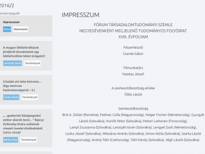 Mostantól elérhető a Fórum Társadalomtudományi Szemle online kiadása a www.forumszemle.eu honlapon. Az archívumon kívül az aktuális számba is beleolvashatnak az érdeklődők. A közel ezer tanulmányt, recenziót, kronológiát, bibliográfiát, valamint egyéb... Bővebben