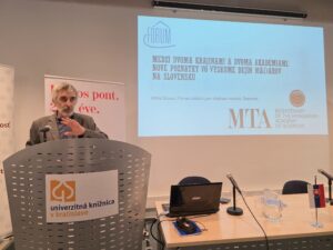 A SZMAT előkészítésében zajló egynapos kétnyelvű (magyar–szlovák) konferencián képviseltette magát a Fórum Kisebbségkutató Intézet is. A délelőtti részben Liszka József „…mintha magunkon kívül semmi betsületre méltó dolgot egyebekben nem találhatnánk” (Megjegyzések a magyar és a szlovák folklorisztika 19. századi kapcsolataihoz) címmel adott elő, a délutániban pedig Simon Attila Két ország és két akadémia között (Új eredmények a szlovákiai magyarok történetének kutatásában) címmel. A program bevezetőjében a résztvevőket Freund Tamás, az MTA elnöke, Martin Venhart, az SZTA elnöke, Silvia Stasselová, az Egyetemi Könyvtár főigazgatója és Mészáros András, a SZMAT elnöke köszöntötte. A rendezvény előtt megkoszorúzták Széchenyi István emléktábláját.